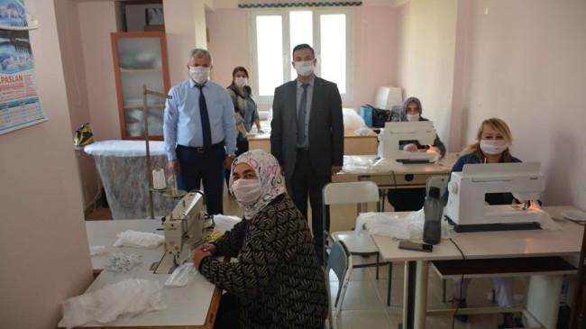 İlçemiz Halk Eğitim Merkezi tarafından, ilçemizde görev yapan sağlık çalışanlarımız ve Vefa Sosyal Destek Grubu personelimizin kullanımı için tek kullanımlık maske üretimi gerçekleştiriliyor.