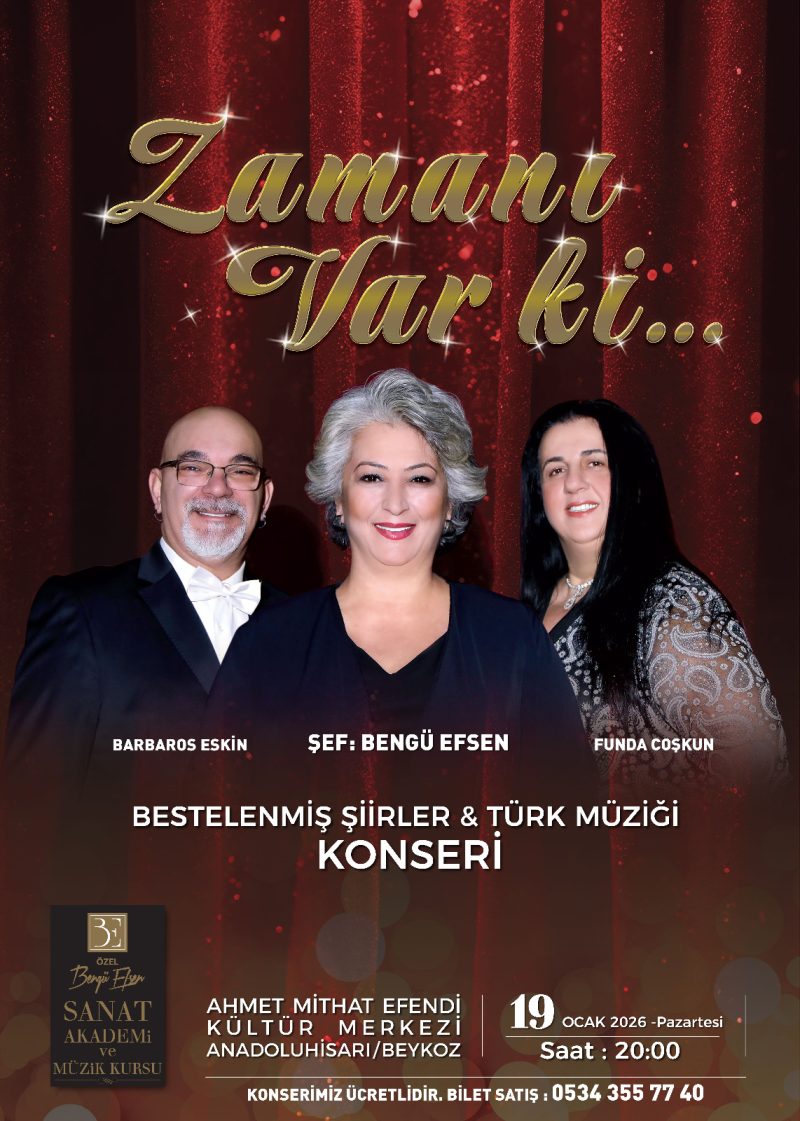 Özel Bengü Efsen Sanat Akademi ve Müzik Kursu’nun özel projesi “Zamanı Var Ki…”, şiirle müziği zamansız bir yolculukta buluşturuyor. Şef Bengü Efsen yönetiminde gerçekleşecek konser, 19 Ocak Pazartesi akşamı Beykoz’da sanatseverlerle buluşacak.