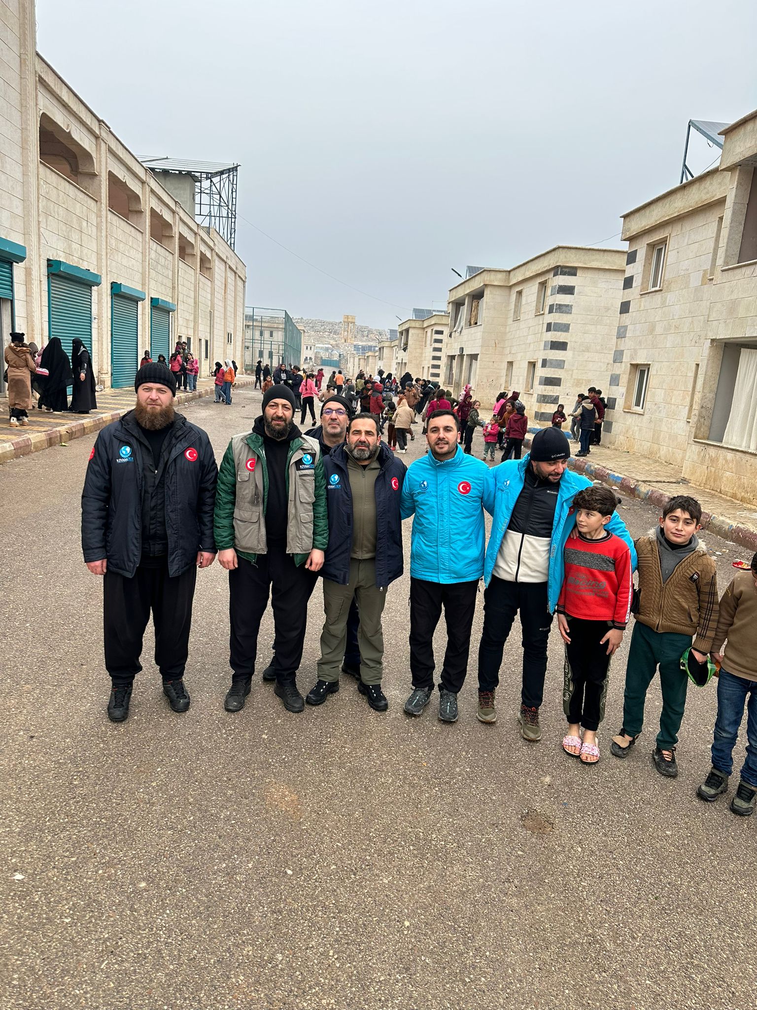 Heyet, Suriye’nin İdlib kentinde Kıyamder tarafından inşa edilen ve 850 yetim ve dul aileden oluşan yerleşim alanında çocuklarla bir araya geldi. İkinci etabı tamamlanma aşamasında olan ve yaklaşık 1000 ailenin barınmasının hedeflendiği Yetim Köyü Projesi hakkında yetkililerden bilgi alındı ve sahada incelemelerde bulunuldu.